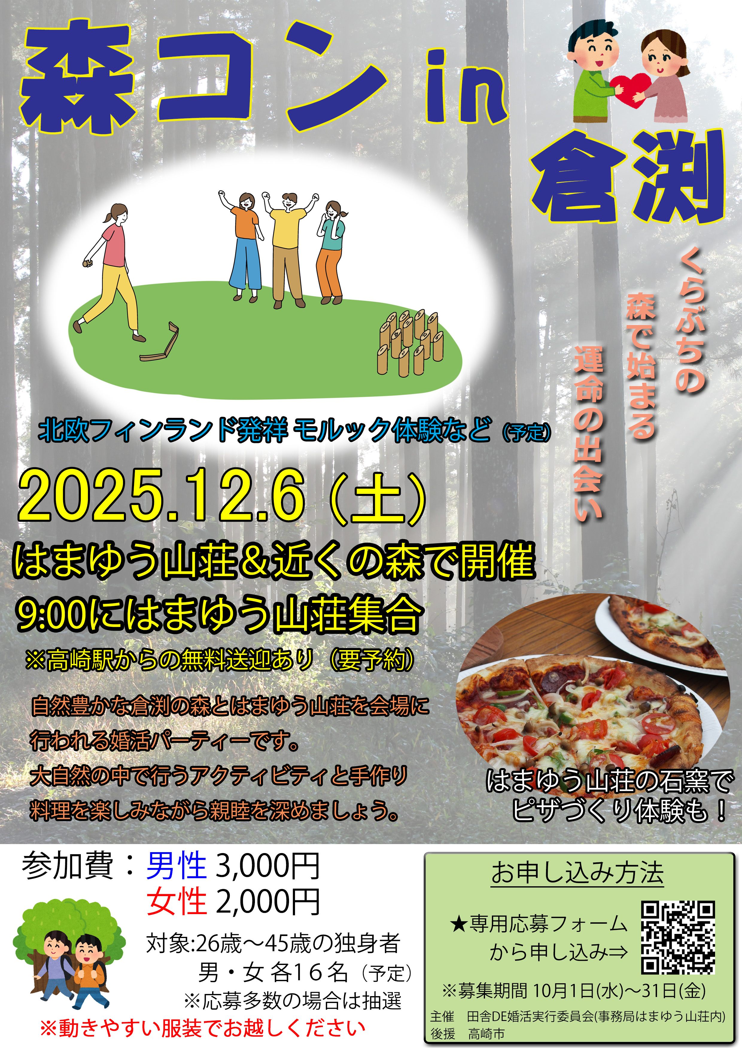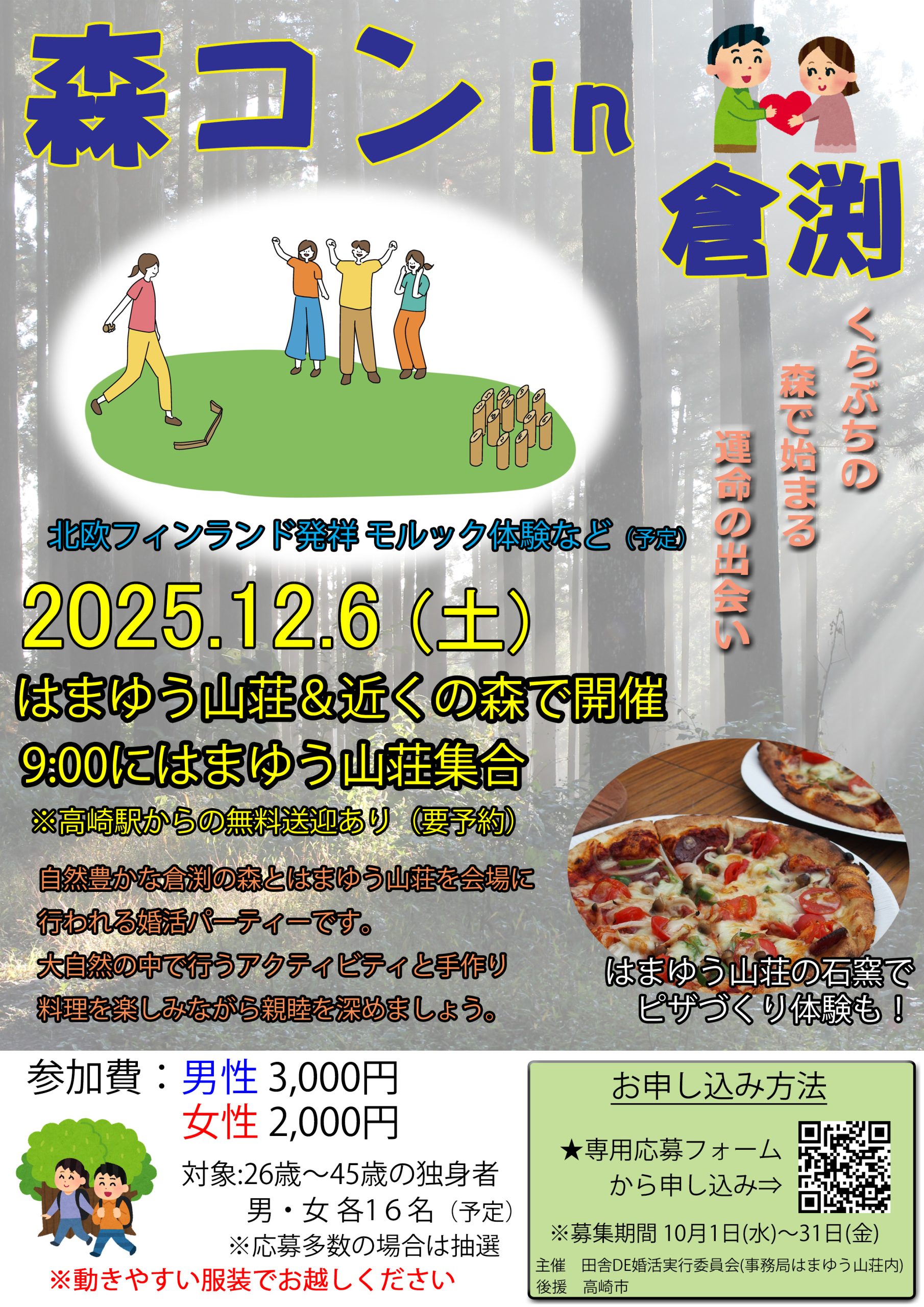 2025年12月6日(土)、はまゆう山荘および周辺の森を会場にした婚活イベントを開催いたします。